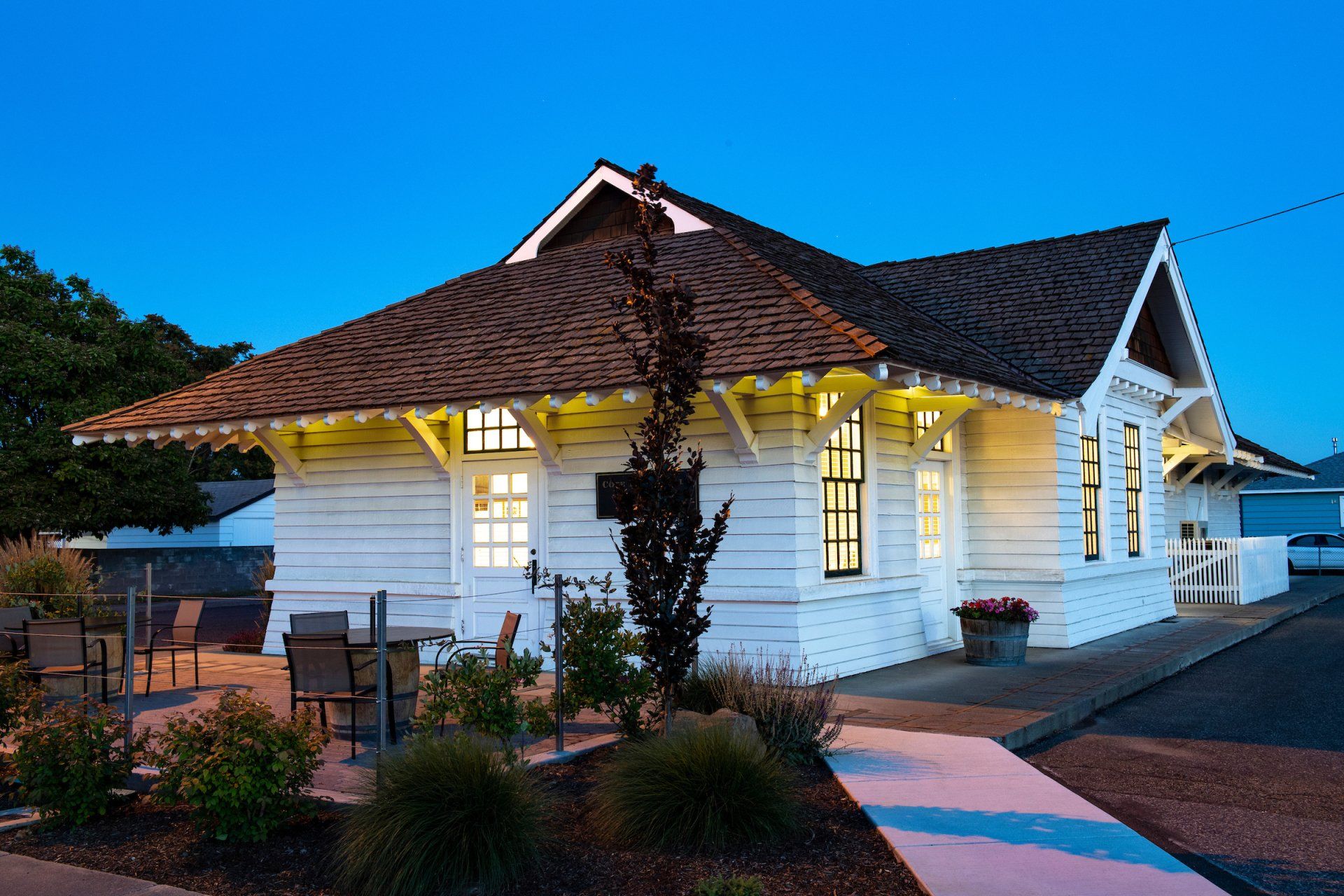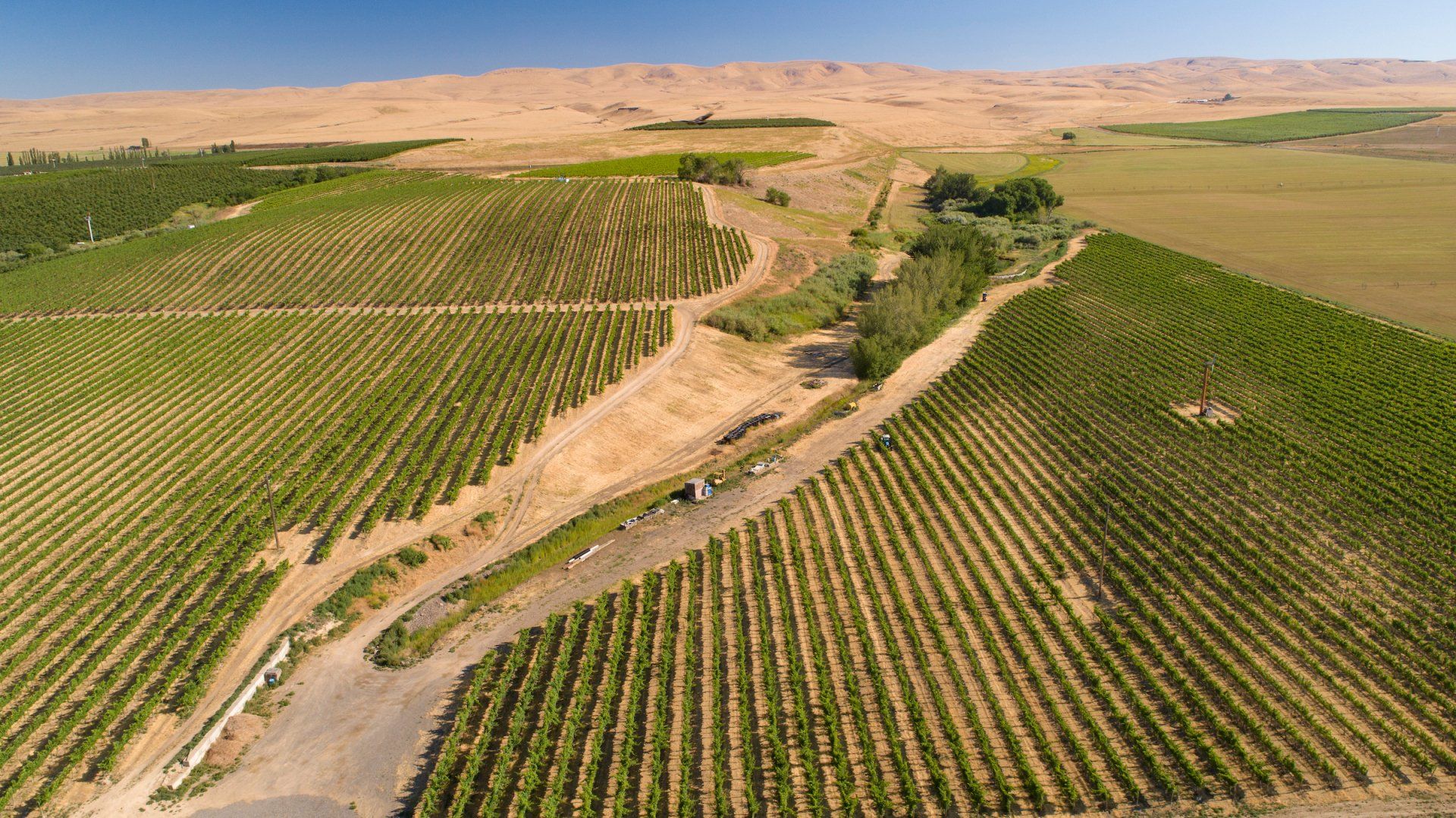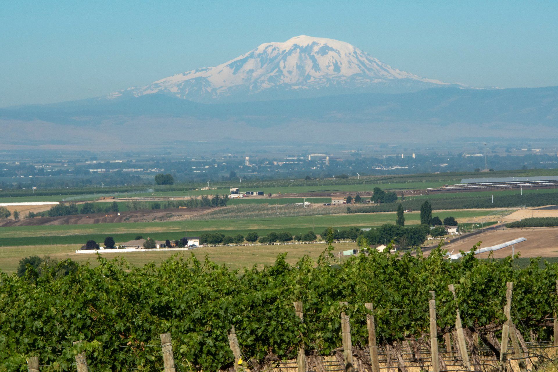 We wanted to return the favor, and inspire your virtual meetings as well. Click on any of these images to download and transport yourself during your next Zoom. The first two are Mount Adams from DuBrul Vineyard. The third is an aerial view of the DuBrul. The fourth is looking out over the Yakima Valley from DuBrul. In the second row, there is a picture of the Train Station tasting room, followed by images from the Côte Bonneville Estate, built by Napoleon DuBrul. The first is the house, as depicted on the Chardonnay label, followed by the Carriage House and an arbor in the yard.